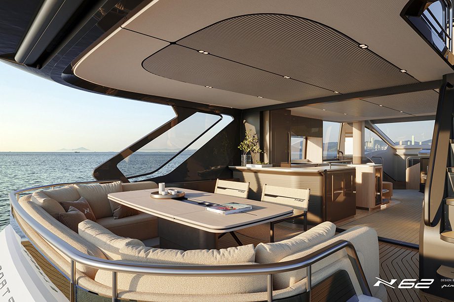 Esse “sacrifício” deu ao novo modelo da NX um de seus maiores destaques — que era um item obrigatório na lista mencionada por Jonas. O tópico mencionava que 12 pessoas sentadas deviam ser suportadas na praça de popa, coisa que geralmente só é possível em embarcações acima de 70 pés.